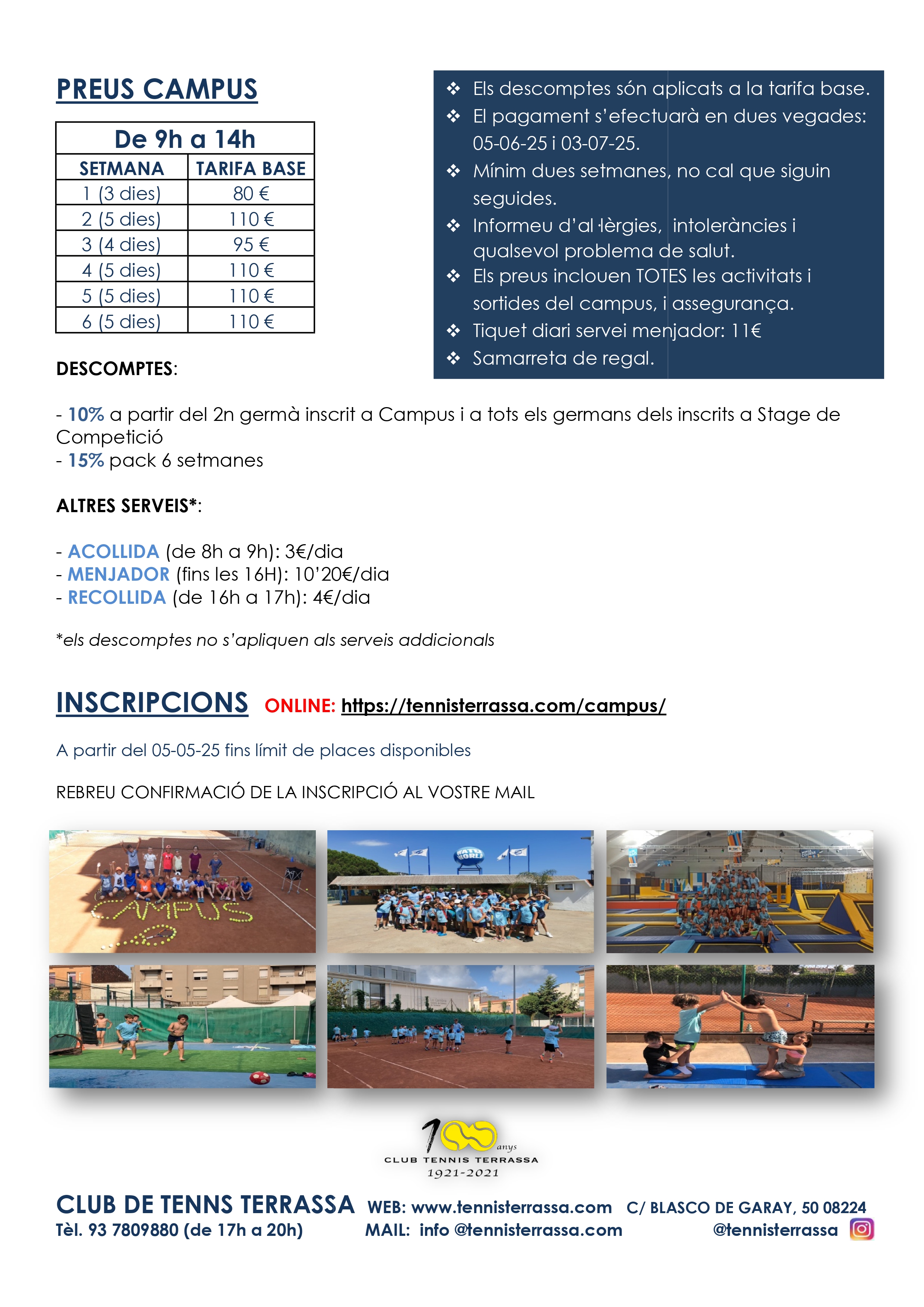 Podeu consultar el següent tríptic informatiu i a sota d’aquest, trobareu l’enllaç per realitzar la inscripció. Les places són limitades.